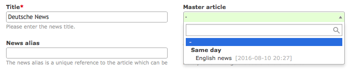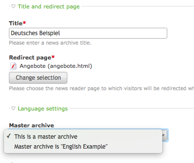 Once you have successfully linked two or more archives together, each news article will get a new select menu to choose the master language version.