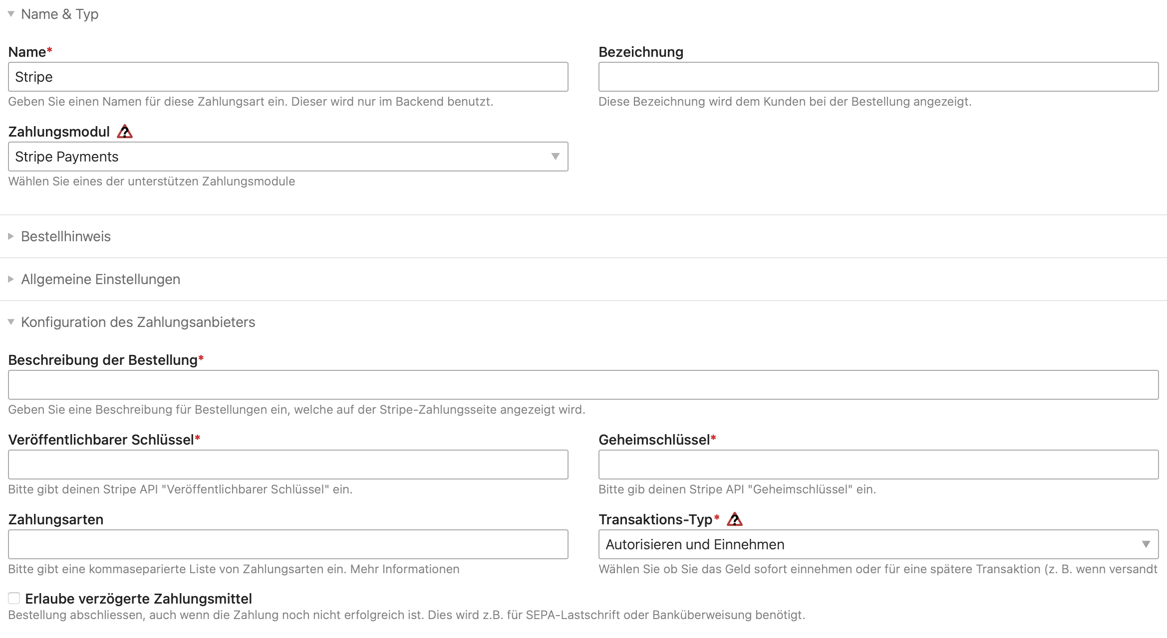 Wird die entsprechende Option aktiviert, prüft die Zahlungsmethode nicht mehr auf Erfolg der Zahlung. Die Bestellung wird sofort abgeschlossen, ob die Bestellung versendet werden soll, muss manuell geprüft werden.
